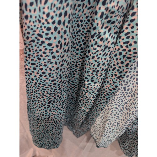 This robe has a fun leopard print in blues and pinks. Matching belt also included. Step up your nightwear game with this robe.
