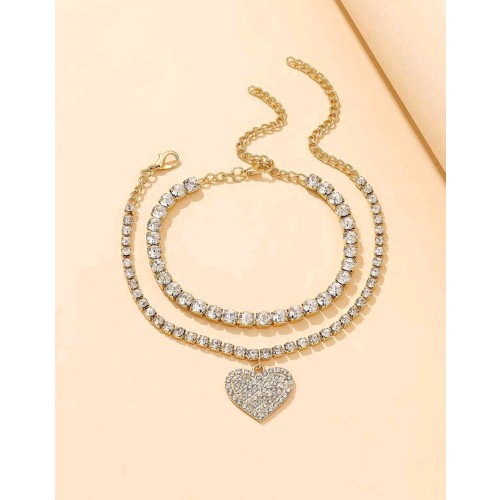 Diamante heart anklet two pack in gold, could also use as bracelets.