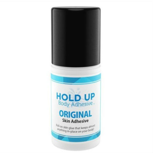 Hold Up Body Glue – Original is a hypo-allergenic skin adhesive that allows you to effortlessly keep clothing, bra straps, stockings, socks and jewellery in place where you want them.