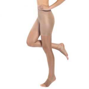 Honey coloured tights in a light denier, perfect for summer days. Can be worn with open toed shoes, making it a perfect addition to any summer outfit.  Features: raises your bottom, flattens your tummy, slims your hips and thighs.