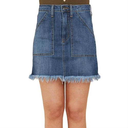 sky blue distressed denim skirt